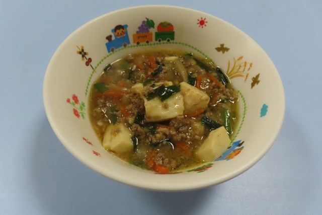 マーボーどうふは、めんじつゆ、赤味噌、しょうが、塩、薄口醤油などで味つけられ、でんぷんでとろみがついています。