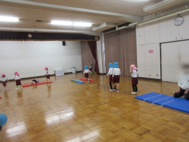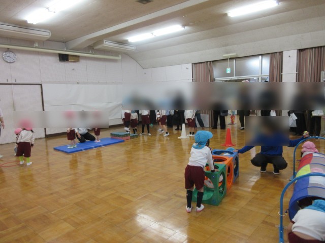 遊戯室ではサーキット遊び、保育室ではままごとやブロック、絵を描くなど、自分で遊びたいものを見つけて楽しく遊んでいました。