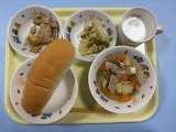 4日 … 豚肉の炒め物 鶏肉と春雨のスープ きゅうりのナムル ごはん 牛乳 小...