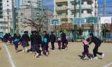 室内で遊んだ後、広い校庭で手をつないで走りました。一緒に走って気持ちよかったです...