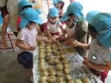 5歳児そら組がたくさん掘れたジャガイモを数えていました。「1.2.3.4.・・・...