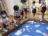 いよいよプール遊びが始まります。 5歳児そら組が掃除をしてくれたプールを、はな組...