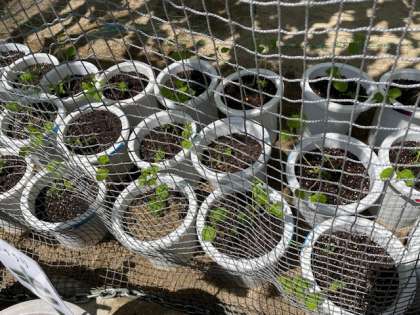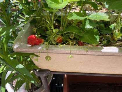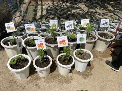 保護者の皆様 3日間の夏野菜植えのご協力ありがとうございました。ミニトマト ナス ピーマン エダマメ それぞれこれからの生長が楽しみですね。今年度初めてエダマメ栽培もしてみることにしたのですが、大変です!エダマメの苗がいくつか折れています。園芸屋さんが「エダマメの若い苗は鳥の大好物だから気をつけてください」とおっしゃっていたことを思い出しました。エダマメは砂場ネットの中に緊急移動しました。カボチャ キュウリ パプリカ シソ トウモロコシ も育てていこうと思っています。イチゴが赤く色づいてきていい匂いです。気温の変動に驚かされる毎日ですが、野菜やイチゴなど大切に育てていきます。