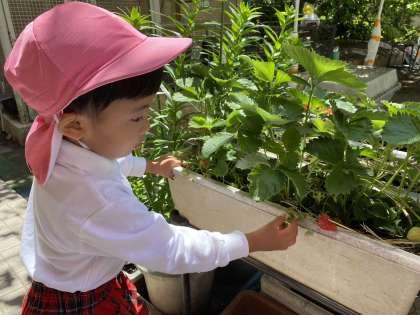 園庭には、美味しそうなイチゴが沢山実ってきています。