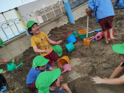 作戦成功なるか!? 公開日 2024/05/30 更新日 2024/05/30 うつぼ日記 またまた5歳児で水遊びをしました。前回、「泥団子も川づくりも面白いけど、次は泥水プールをつくりたいなぁ」「プールができたら、みんなで飛び込もうね!」と次の遊びも楽しみにしていました! そして今日、泥水プール作戦を練ってから遊びに行きました!「深く掘らなきゃ!」「おーい!水持ってきたよ〜!」と考えたことを自分の言葉で友達に一生懸命伝えようとしていました。水も泥も気持ちよくて楽しかったね! いいね(0)