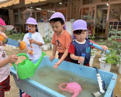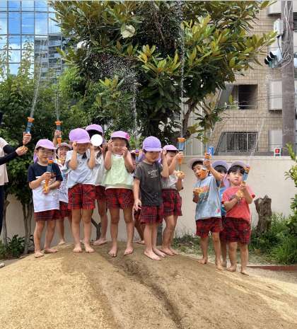 砂場や水鉄砲、スーパーボールすくいなど好きな遊びを選んで遊んでいますよ。