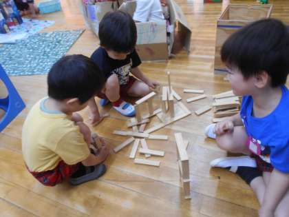 お友達と一緒に、カプラ遊びも、、、「しんかんせん、とおるねんで〜〜」という声も聞こえていました。