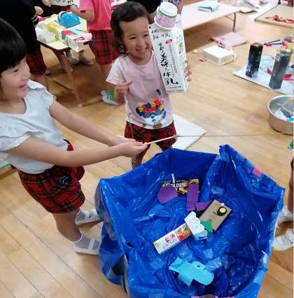 そして、ばら組さんの池では釣りを楽しんでいる子も。子どもたち手作りのなが〜い魚や小さい魚、いろいろな魚が釣れるように、釣り竿をうまく動かしています!