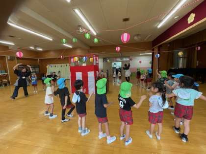 夏祭りが楽しみです 公開日 2024/07/11 更新日 2024/07/11 うつぼ日記 遊戯室の真ん中にやぐらが!天井に提灯が!夏祭りの準備が順調に進んでいます。保護者の皆様のご協力に感謝いたします。今日は5歳児うめ組ゆり組の子どもたちが「アラレちゃん音頭」を踊りましたよ。 いいね(0)