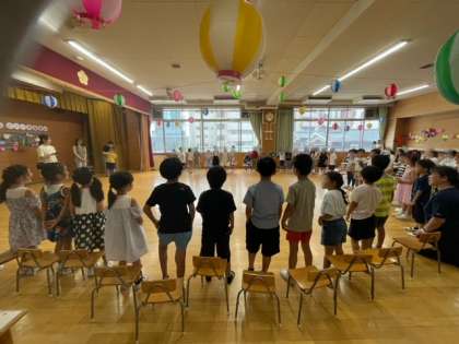 3月に幼稚園を修了した1年生が幼稚園に集まりました。修了してからわずか4ヶ月なのに、みんなとても身体が大きくなっていました。1年生の皆さん、初めての小学校生活1学期よく頑張りましたね。夏休み安全に楽しく過ごしてくださいね。久しぶりに会う友達との再会を喜ぶ子どもたち、パワー全開の子どもたち、元気な1年生に会えてとても嬉しかったです。