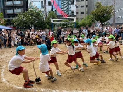 運動会 公開日 2024/10/06 更新日 2024/10/06 うつぼ日記 年長競技「タイヤのつなひき」 1つのタイヤを四方から4チームが引っ張ります。みんなで力を合わせて頑張っていました。?会場からの大きな声援を受けてこれまで以上にパワー全開、白熱した綱引きになりました。 いいね(0)