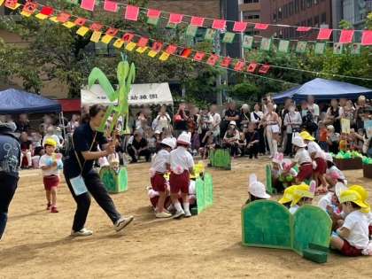 かわいいうさぎになった子どもたちが先生やお友達と一緒に楽しく遊びました。入園して半年、いろいろな経験を重ねてこんなふうに遊べるようになりました。ダンゴムシやカマキリやちょうちょが現れた時の様子もかわいかったですね。