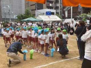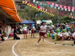 走るのが大好きで友達にバトンを渡しながら勝っても負けてもリレーを楽しんできました。運動会ではたくさんの人たちの声援を受けながらどの子どもも力いっぱい走りきる姿に感動しました。運動会の日、1位になったうめ組さん