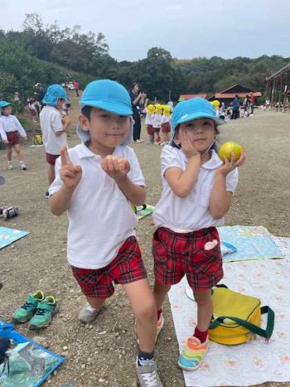 サツマイモ掘りとみかん狩、秋の収穫体験を存分に楽しみました。曇り空で過ごしやすく遠足日和でした。