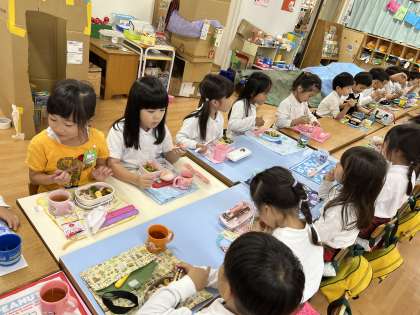 2クラス一緒に過ごしました。お弁当の時は机を長ーくつなげて食べましたよ。
