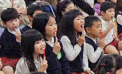 今日は歯みがき指導と保護者向け歯科講話がありました。