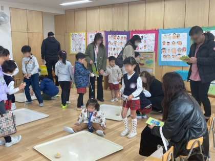 一階の保育室だけではなく二階や三階にも作品を展示したり遊べる場所をつくりました。子どもたちも保護者の皆さんも楽しそうに過ごされていてよかったです。