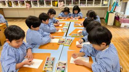 今日は、「鏡開き」「新しいお当番カードづくり」「折り紙の凧揚げ遊び」と活動が盛りだくさん。