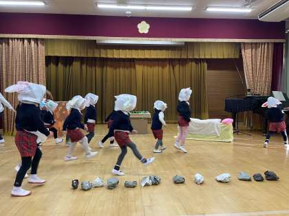 各クラスの劇遊びや、楽器遊び、歌を他のクラスのお友達に見てもらいました。