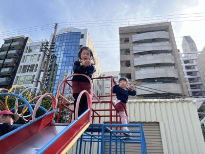 今日は1日寒い中、子どもたちは園庭で元気に遊んでいました。