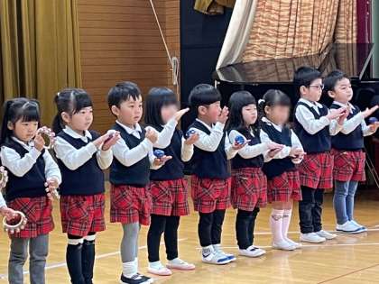 生活発表会1日目 公開日 2025/02/12 更新日 2025/02/12 うつぼ日記 3歳児もも組 楽器遊び 歌 「チャチャチャのリズムで」「むしむしじゃんけん」「はるですね はるですよ」順番に並んで立って先生のピアノ伴奏を聞いてたくさんの人の前で歌えるってすごい! これまでの生活で歌うことの楽しさを存分に楽しんできたことが伝わってきました。とてもかわいらしい見ぶりと歌声でした。 いいね(0)