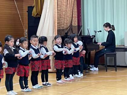 生活発表会2日目 公開日 2025/02/13 更新日 2025/02/13 うつぼ日記 3歳児たんぽぽ組 歌 楽器遊び 「ゆきだるまのチャチャチャ」「ゆげのあさ」「ポンポンポンとはるがきた」先生のピアノを聞きながらとっても楽しそうに歌っていました。すずとカスタネットもしっかりリズムを感じて鳴らしていました。 いいね(0)