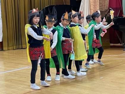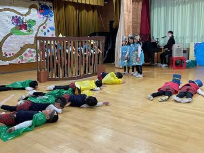 その役の気持ちを考えながら友達や先生と一緒に繰り返してきて発表会当日を迎えました。大勢の人の前で自信を持ってのびのび表現していました。