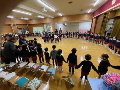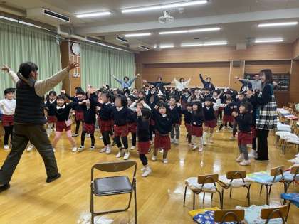 みんなでダンスをしたり仲良し遊びをしました。笑顔いっぱい、リズムにノリノリ、共に遊ぶ楽しさを存分に味わっていました。