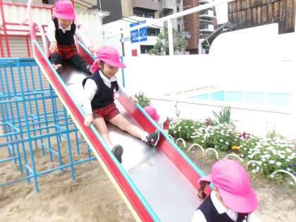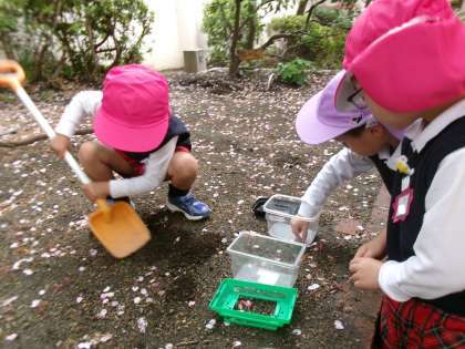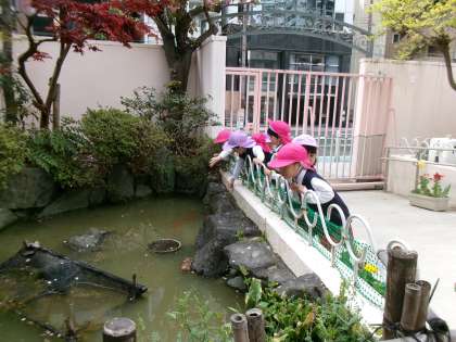 今日からは、年少たんぽぽ組さんもも組さんも一緒なので、お兄さんお姉さんになった気分も嬉しい子どもたちです。池のカメに餌をあげたり、ダンゴムシを探したり、遊具で遊んだり。お友達や先生と一緒に気持ちのよい春の日差しの下で、園庭での遊びを存分に楽しんでいこうと思います。