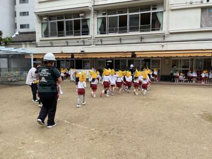 避難訓練 公開日 2025/04/30 更新日 2025/04/30 うつぼ日記 先日、地震津波想定の避難訓練を行いました。年長年中組は防災頭巾をかぶり園庭に避難し、年少組はその様子をテラスから見ていました。その後6クラスで遊戯室まであがり、保護者の皆さんが迎えに来るまで待機しました。保護者の皆様、緊急時引き渡し訓練にご参加ありがとうございました。 いいね(0)