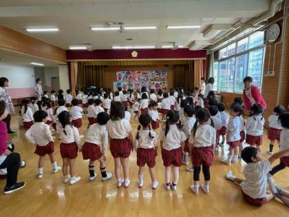 のびやかな素敵な歌声を聴かせてくれました。歌を聴かせてもらった年中年少組の子どもたちも大喜び、聴いてもらった年長組の子どもたちも大喜び、嬉しい時間となりました。