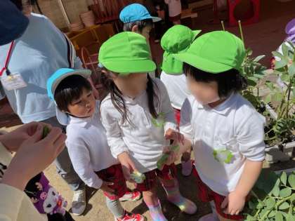 ソラマメ 公開日 2025/05/02 更新日 2025/05/02 うつぼ日記 年長組の子どもたちが昨年度から育てていたソラマメが収穫の時を迎えています。先日から担任の先生やお友達と一緒に収穫していたのですが、今日はなんと、とーっても大きなソラマメを発見して驚いていました。明日から4連休、来週はふれあい栽培で夏野菜を植えます。楽しみですね。 いいね(0)