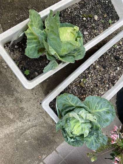 子どもたちが植えたキャベツもこんなにしっかり葉っぱが巻いて育っています。