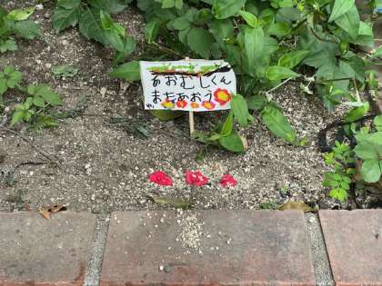 あおむしくんまた会おう 公開日 2025/05/31 更新日 2025/05/31 うつぼ日記 うめ組ゆり組では、保育室で飼育していたアオムシが死んでしまいました。お墓を作ってあげよう、ミカンが好きだからミカンの木の下がいいかも、お花や葉っぱもおいてあげよう と話していたそうです。小さな生き物を大切にする気持ちが育まれていることを嬉しく思います。 いいね(0)