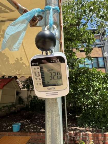 戸外で遊んでいると暑さ指数計が『危険』になりました。
