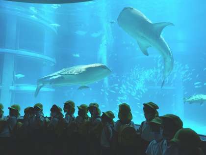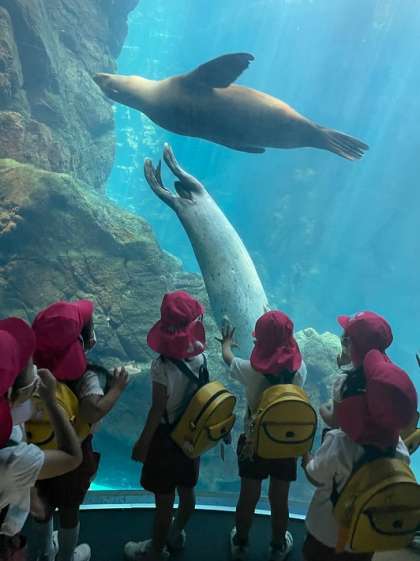 ジンベエザメやペンギン、アザラシやいろいろな魚などを間近に見ることができ、子どもたちは興味津々でした。