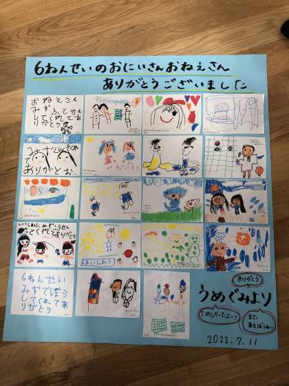 6年生がつくった的に向かって水鉄砲で遊んだり、水風船を使ってキャッチボールをして遊んだりしとてもいい機会になりました。