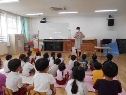 西区保健福祉センターより、4歳児を対象に健康教育や絵本の配布をおこなう「4歳児訪問事業」を実施していただきました。