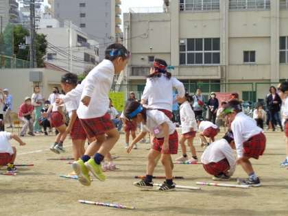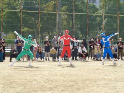 運動会楽しかったね 公開日 2022/10/25 更新日 2022/10/25 うつぼ日記 4歳の子どもたちは、忍者になって、いろいろな術に挑戦しました。「伝説の巻物」を手に入れることができてうれしかったね。3歳の子どもたちは自分たちで作った電車に乗ってお出かけをしました。トンボやチョウチョも遊びに来ました。 そして、靱レンジャーも応援にかけつけてくれました。「元気なあいさつもがんばって」と約束をしました。 いいね(0)