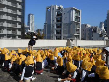 今回は園児に事前の予告をせずに行いましたが、急な放送にも慌てずに避難行動をとっていました。