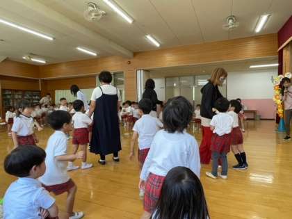誕生会のアーチが新しくなりました。この下で誕生児たちが自己紹介をしてくれました。幼稚園でたくさんのお友達からお祝いしてもらいみんなとっても嬉しそうでした。5月生まれさんおめでとうございます。