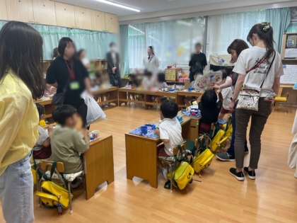 今日はお弁当参観と学級懇談会をしました。毎日のお弁当作りありがとうございます。集団生活の場でお子さんがお弁当を食べる様子はいかがでしたか?年長年中組は歯をみがく様子もご覧いただきました。学級懇談会では同じクラスの保護者どうし知り合う機会になったのではないでしょうか。学級委員の皆様ありがとうございました。