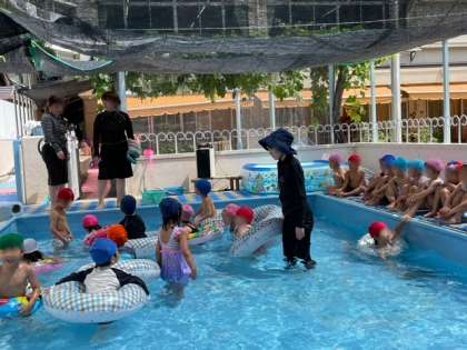 今日は絶好のプール遊び日和でした。水の冷たさや心地よさを存分に味わいながら遊んでいました。