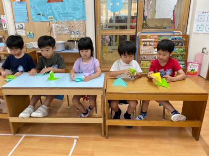 折り紙 公開日 2023/07/06 更新日 2023/07/06 うつぼ日記 5歳児うめ組は折り紙をしていました。先生の話をよく聞いて、折り紙をよく見てしっかり考えながら折っています。集中して取り組む姿はさすが年長組です。 いいね(0)