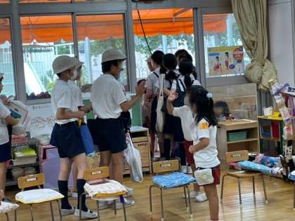 お兄さんお姉さんがとても優しくて、子どもたちはもちろんのこと私たち幼稚園の教職員も感動しました。4年生を見送る時は「ありがとう〜」「バイバーイ」といつまでも園児が手を振りながら声をかけていました。4年生の皆さん先生方どうもありがとうございました。