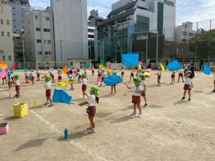 急遽お借りした4階多目的室でおにぎりを食べてから園に戻りました。西船場小学校の先生方に感謝です。子どもたちはとっても頑張っていました。運動会で多くの方に見ていただくことがとても楽しみです。