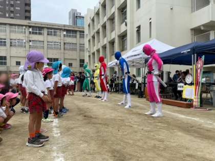 今年も靱幼稚園の運動会に、ウツボレンジャーがやってきました。