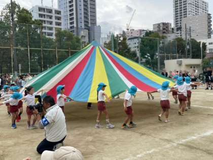 演技のラストはパラバルーンです。ひとつひとつの動きを一生懸命に、そしてクラスの友達と気持ちを合わせながらしていることが伝わってきます。これまでの過程を思い返すと胸がいっぱいです。