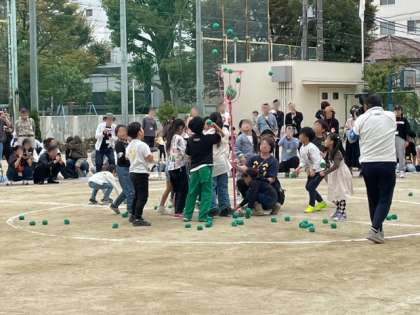 元気いっぱい玉入れする姿を見せてくれてありがとう。転勤や退職で靱を離れた先生方も応援してくださっていましたよ。