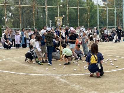小学生の玉入れです。1年生から3年生で行うというお知らせをするのが集合後になりごめんなさい。